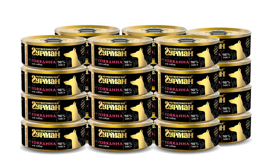 Четвероногий Гурман Golden line консервированный корм с говядиной натуральной в желе для взрослых собак - 100 г (24 шт)