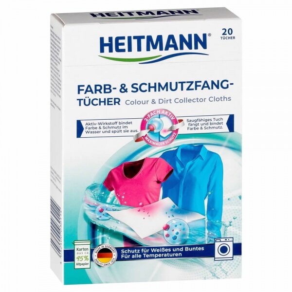 Heitmann салфетки для предотвращения случайной окраски при машинной стирке, картонная пачка, 20 шт.