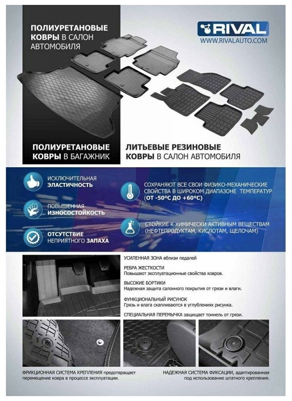 RIVAL 11801005 Коврик автомобильный в багажник Ford Focus III хэтчбек (с докаткой) 2011-2019, полиуретан