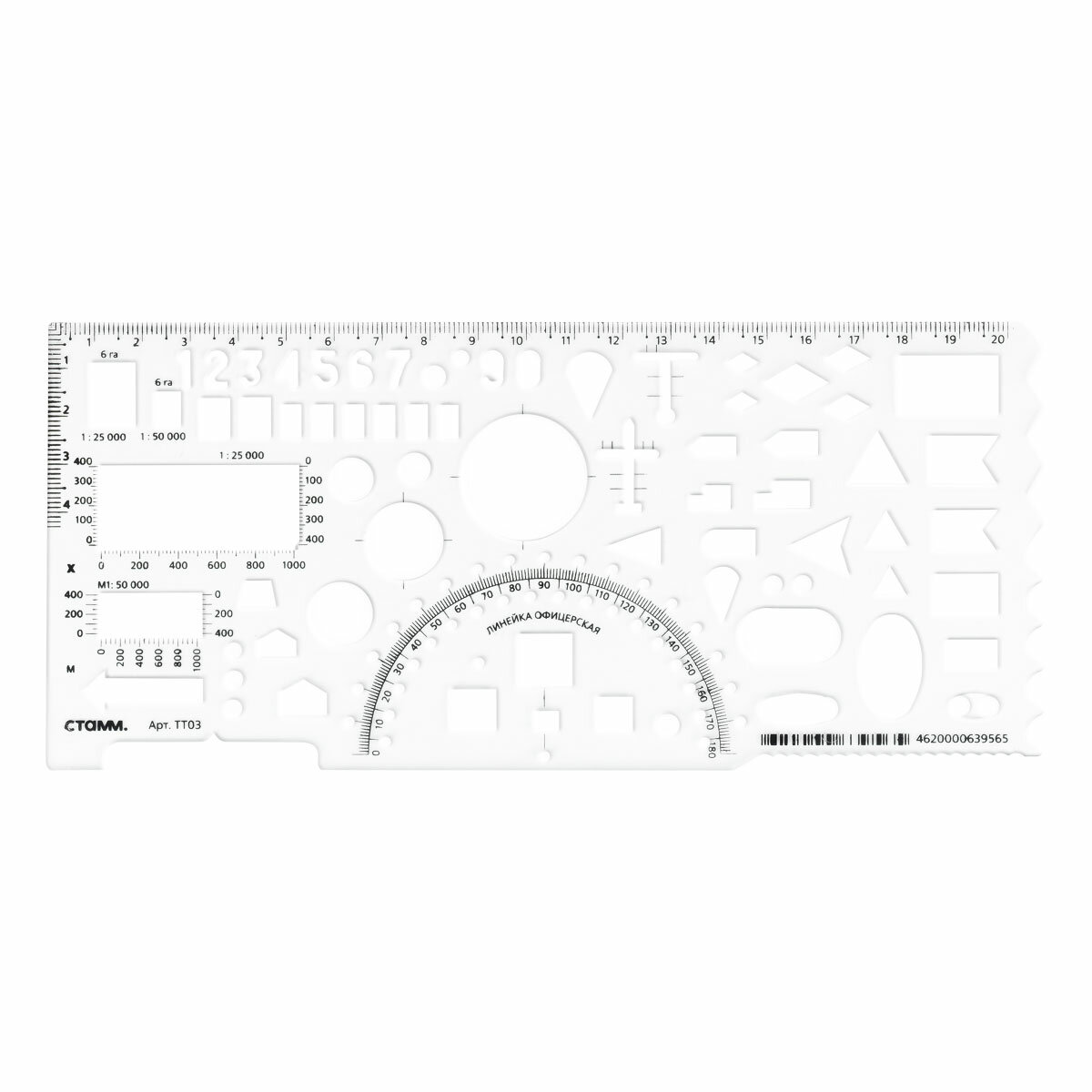 Линейка офицерская СТАММ 20 см, №2 (командирская), прозрачная, 65 тактических элементов, печатная шкала (ТТ03)