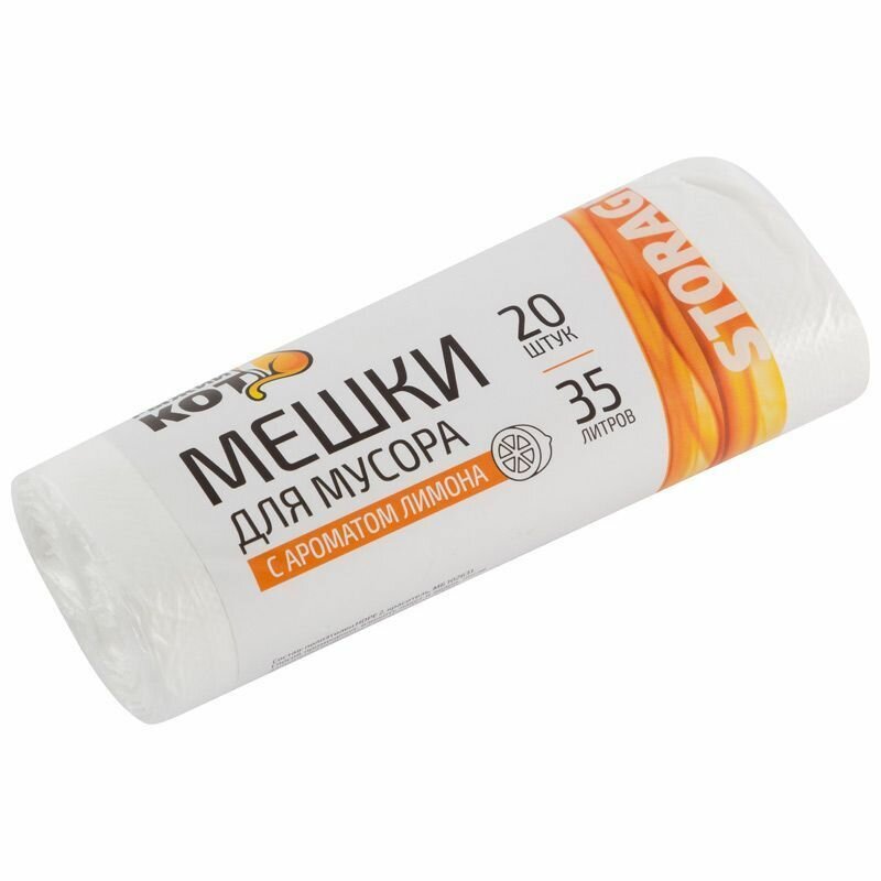Купить Мешки для мусора 35л/20шт,10 мкм,ПНД,ароматизированные,белые,рулон,Лимон,310360 Рыжий Кот