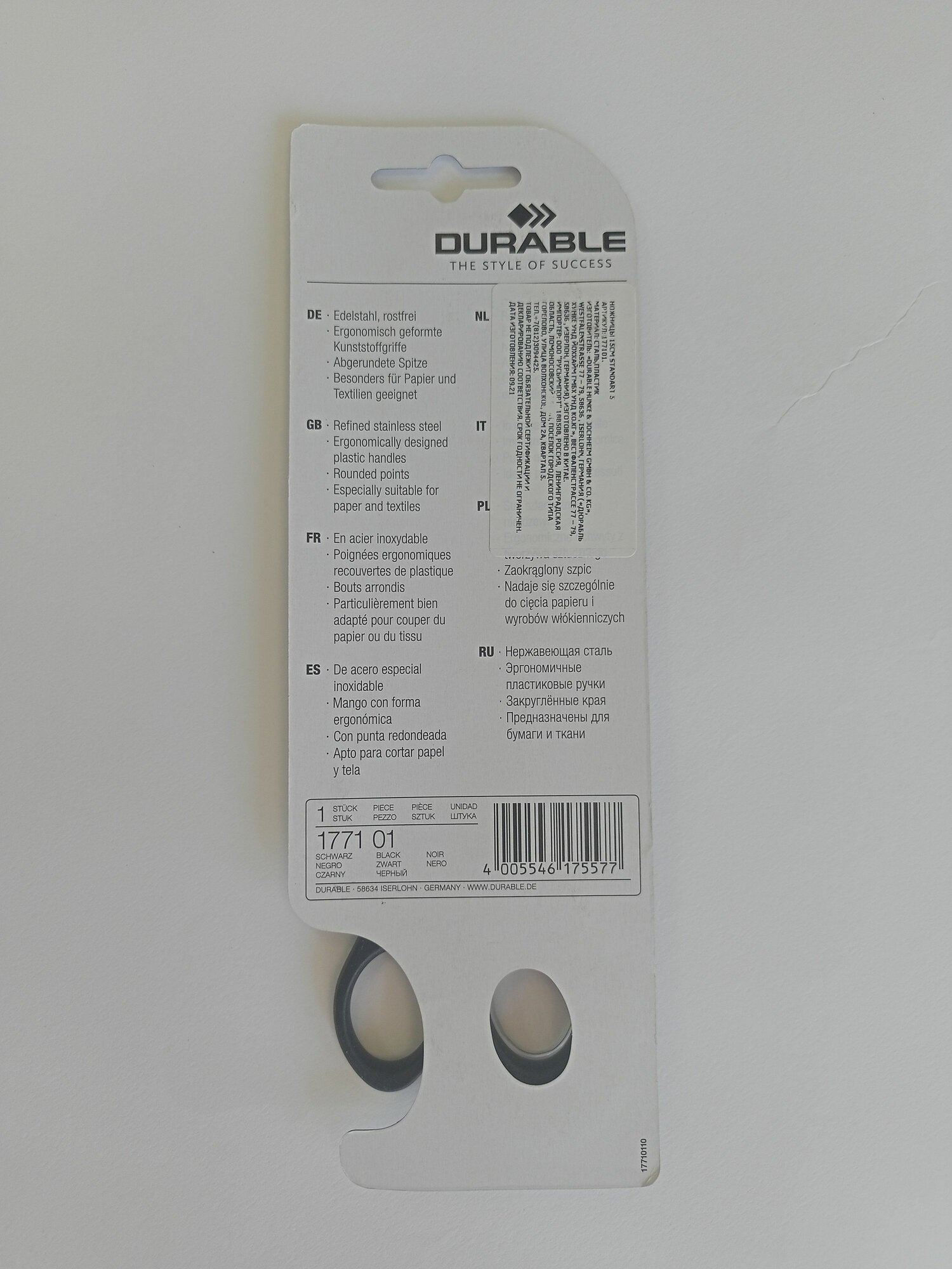 Ниже Вы можете прочитать отзывы на Ножницы канцелярские Durable Стандарт, 15 см, закругленные концы, нержавеющая сталь Черный, ознакомится с подробными характеристиками, посмотреть интересные обзоры и фотографии на Ножницы канцелярские Durable Стандарт, 15 см, закругленные концы, нержавеющая сталь Черный.