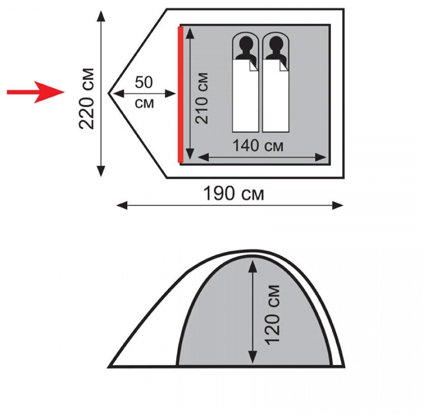 | Отзыв: | в жару и в сырую погоду будет конденсат в палатке, вещи у стенок будут сырые |