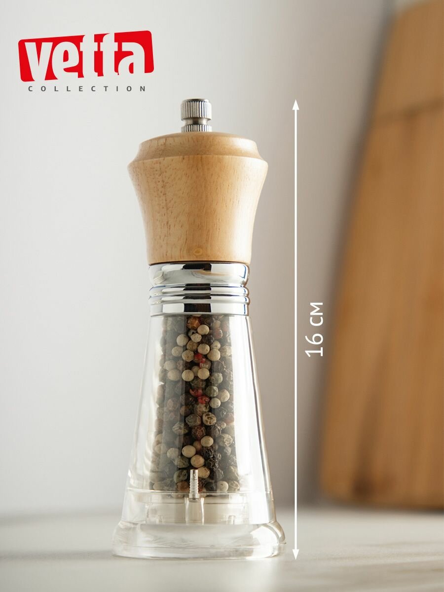 Мельница для специй акрил+дерево, высота 16см, P019-06P VETTA