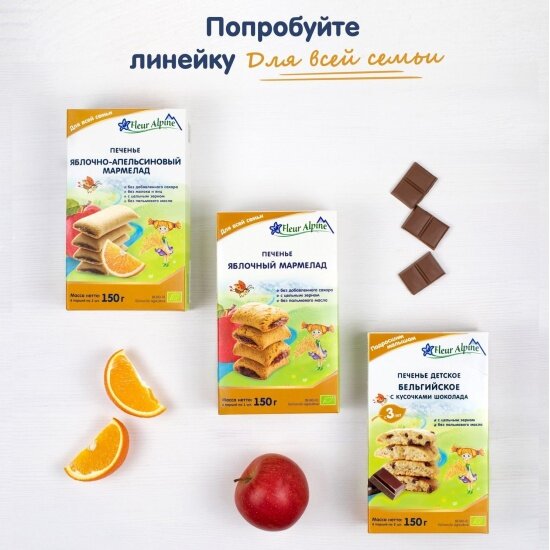 Печенье детское Fleur Alpine Органик "Бельгийское с кусочками шоколада", с 3-х лет, 150 г