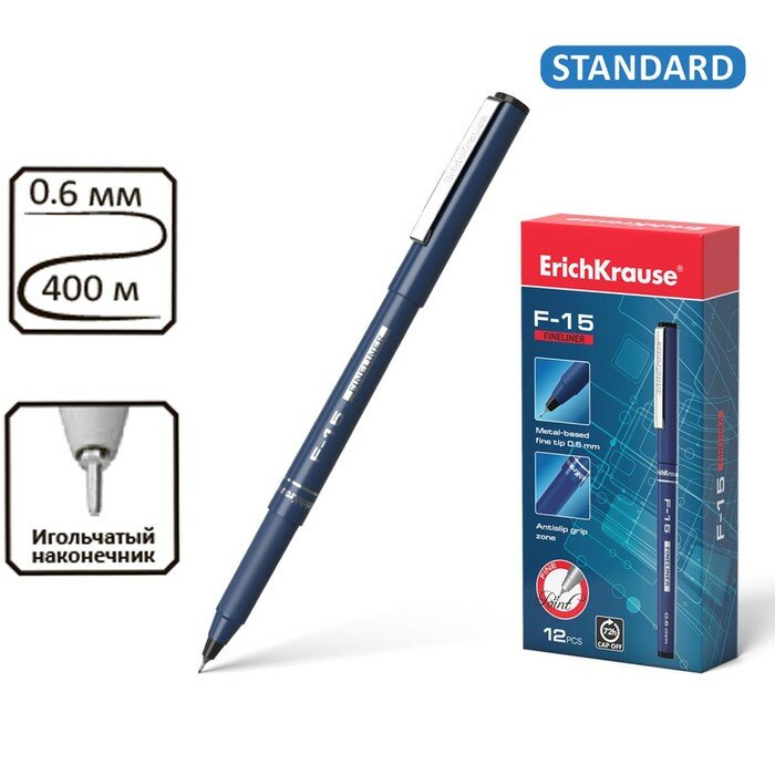 ErichKrause Ручка капиллярная Erich Krause F-15, узел 0.6 мм, чернила чёрные, длина линии письма 400 метров