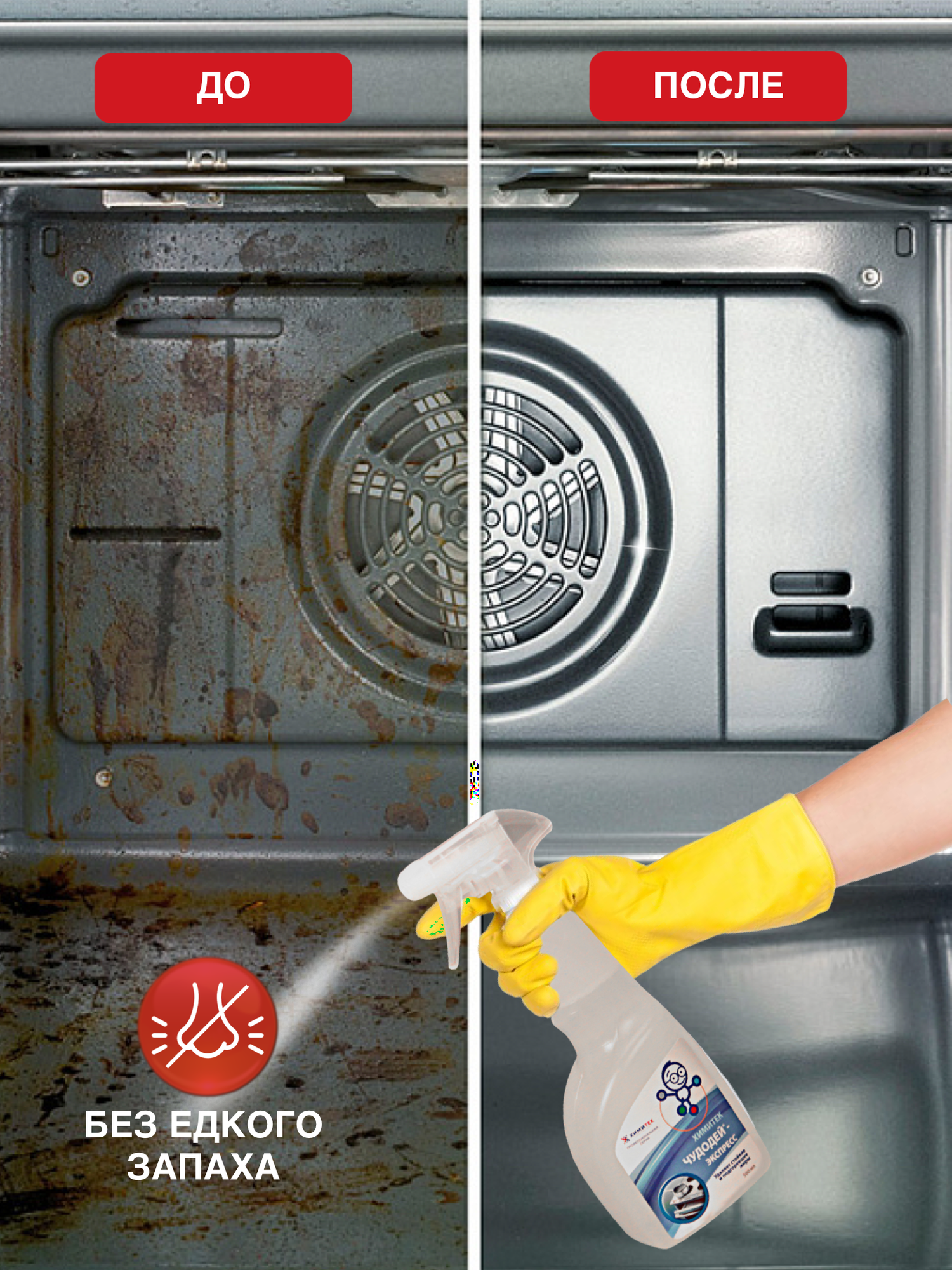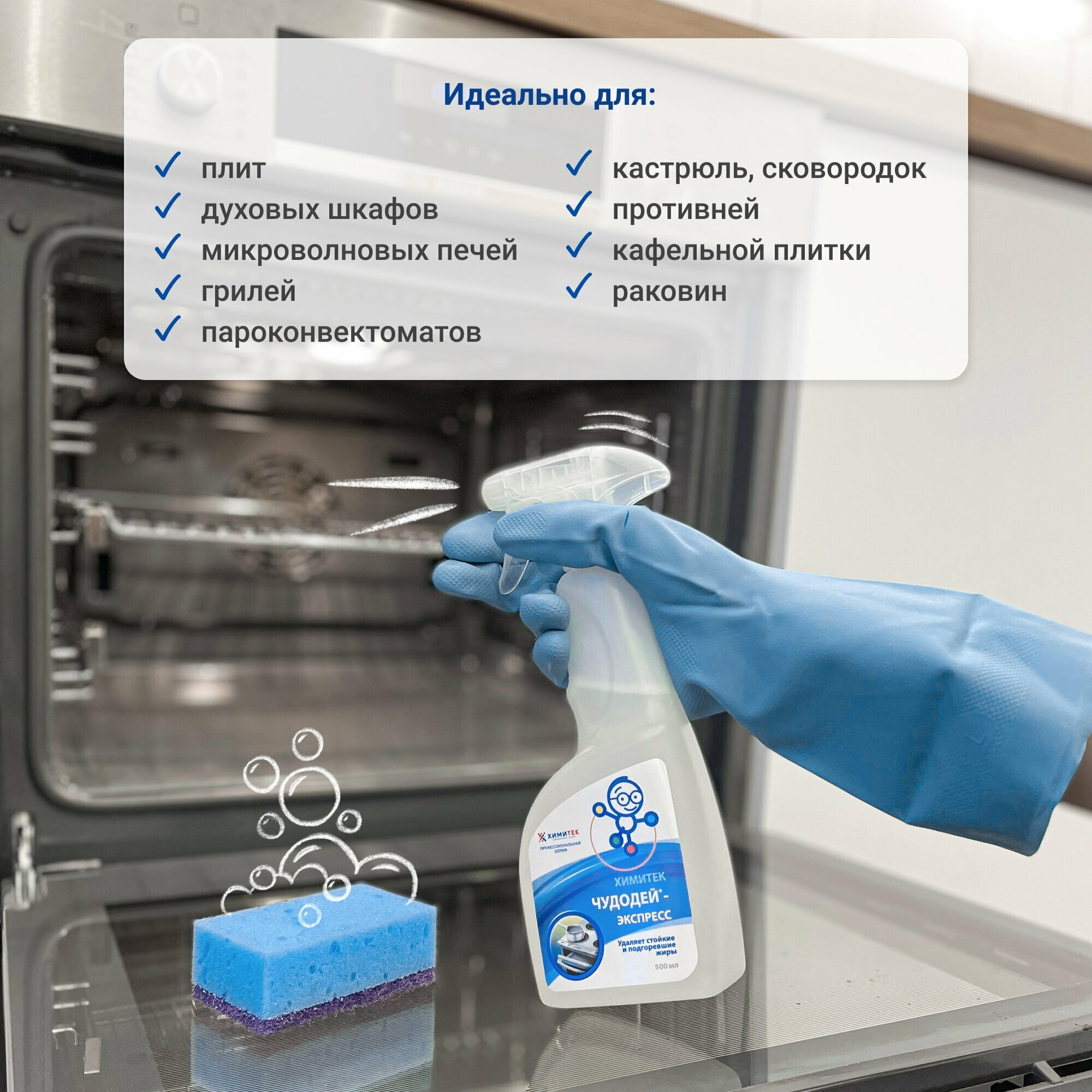 Профессиональное средство для чистки духовок, плит, СВЧ-печей от жира и нагара, жироудалитель-спрей, антижир для кухни химитек Чудодей-Экспресс, 0,5л