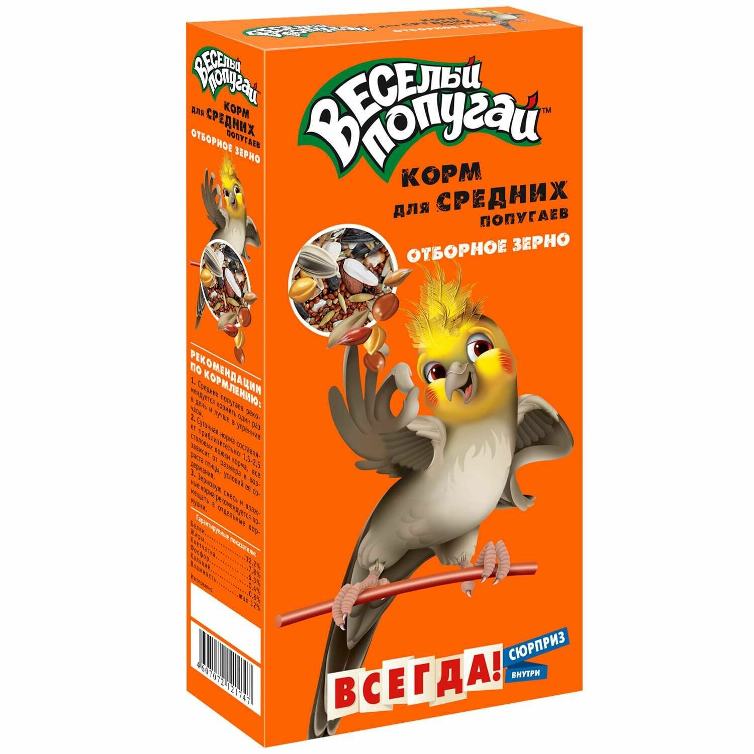 Купить Веселый попугай Корм "Весёлый попугай" для средних попугаев, отборное зерно, 450 г (+подарок)
