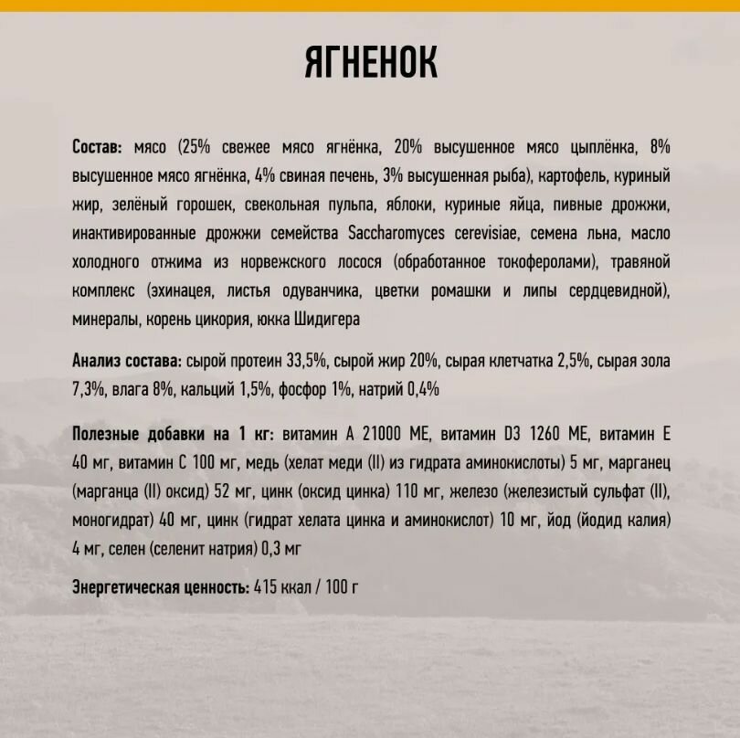 | Вкус | с ягненком |