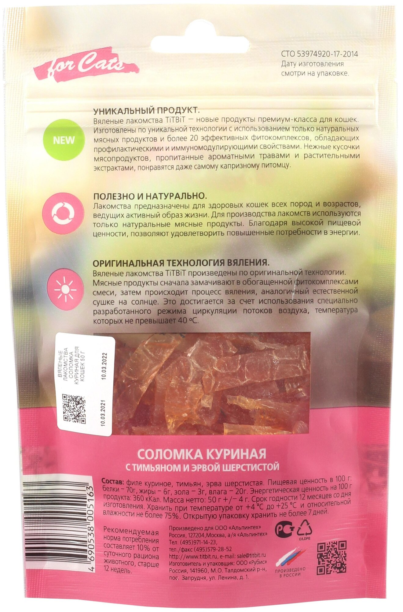 Лакомство TiTBiT Соломка куриная с тимьяном и эрвой шерстистой для кошек (50 г)