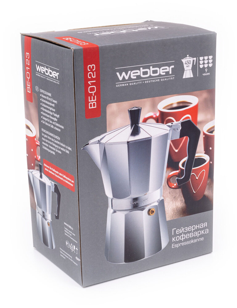 Гейзерная кофеварка Webber BE-0121, 150 мл, 150 мл, серебристый/черный интересное: