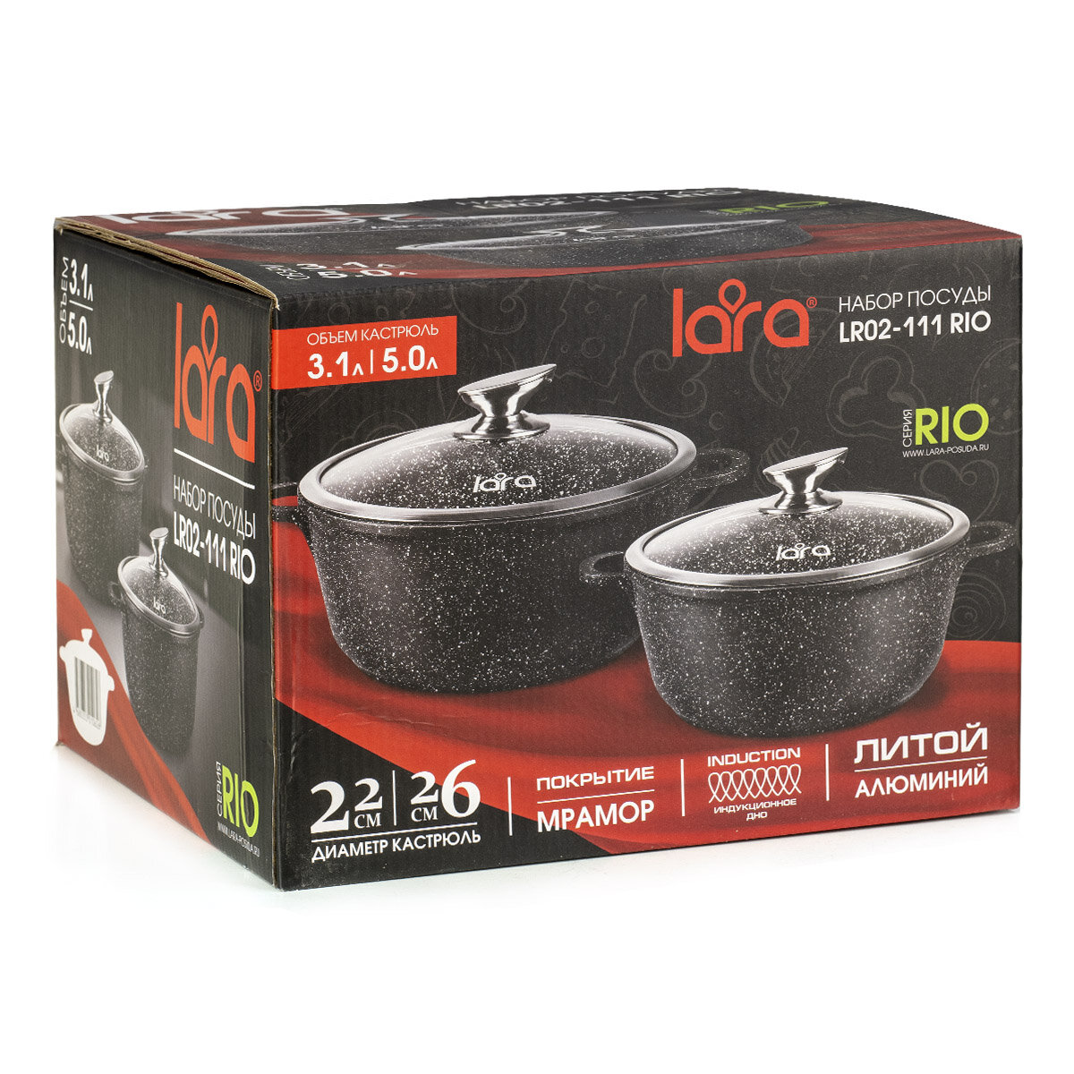 Кастрюли (LARA LR02-111 Набор посуды LARA RIO, 2 пр., (кастр. 3.1л + 5,0л))