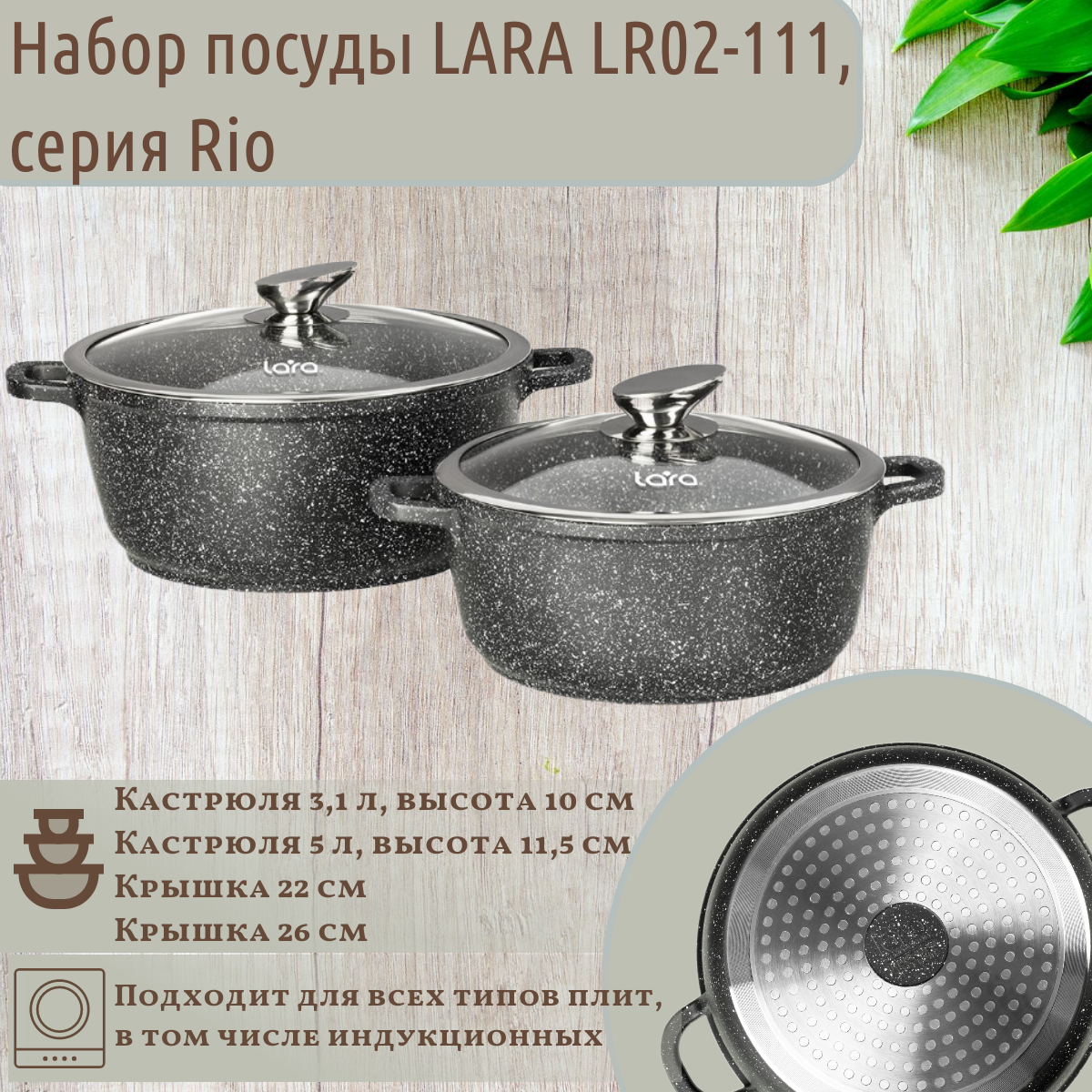 LARA LR02-111 Набор посуды LARA RIO, 2 пр., (кастр. 3.1л + 5,0л)
