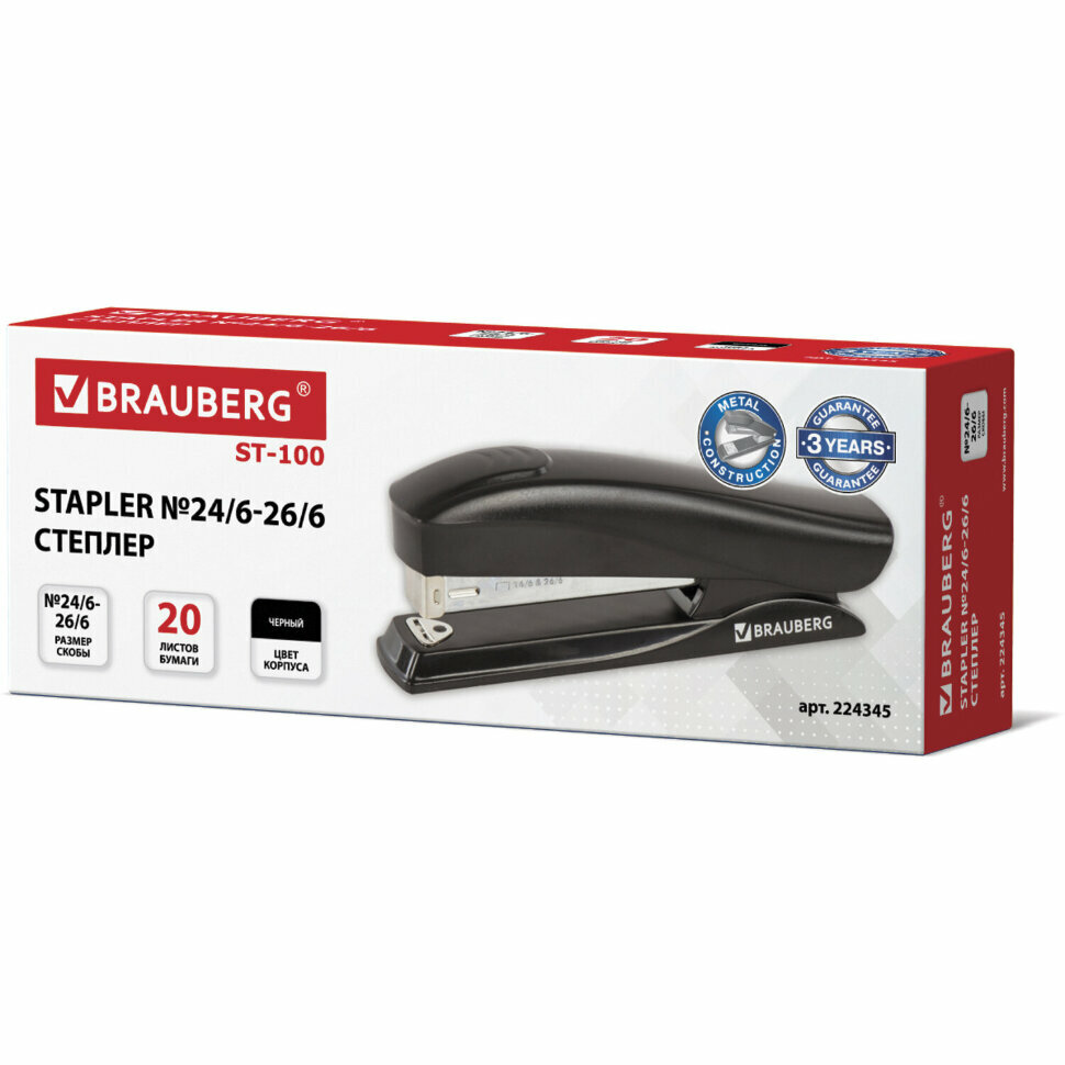 Степлер Brauberg №24/6, 26/6 "ST-100", до 20 листов, черный (224345)