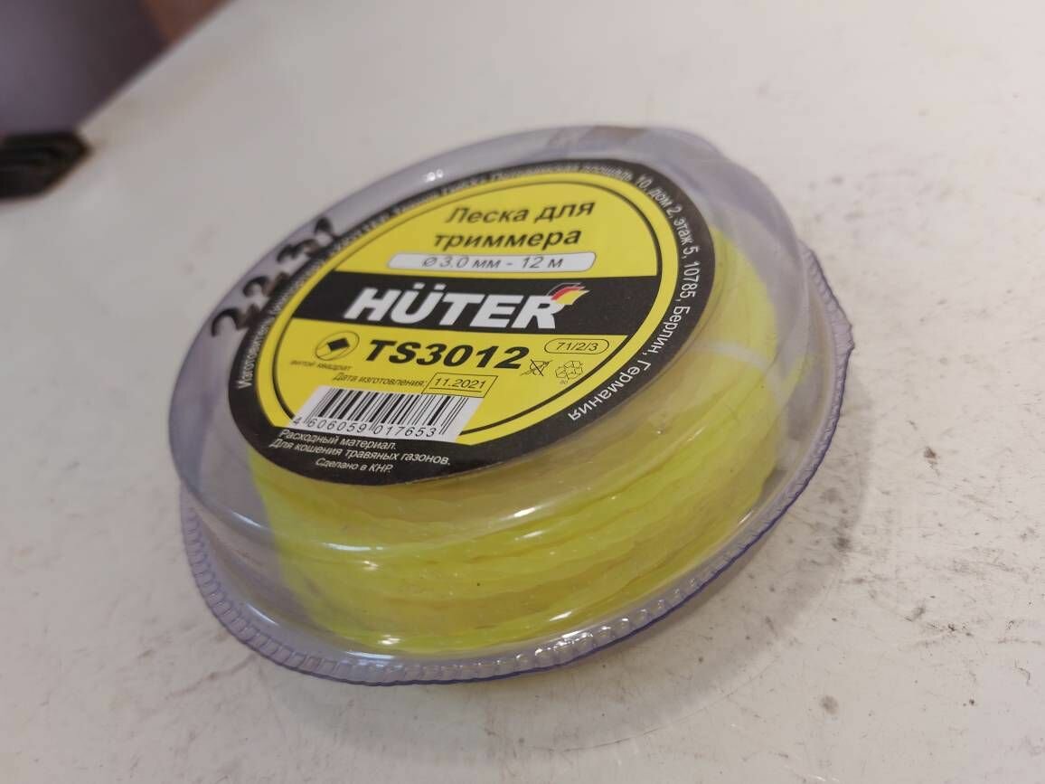 Леска для триммера Huter TS3012 3 мм х 12 м витой квадрат HUTER TS3012 | цена за 1 шт | минимальный заказ 1
