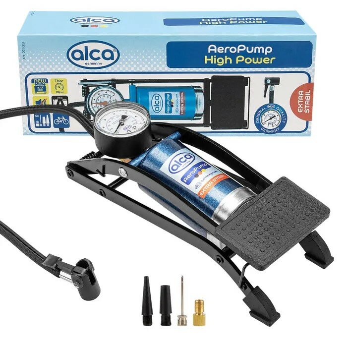 Насос ножной Alca 1 цилиндр, манометр, 4 адаптера