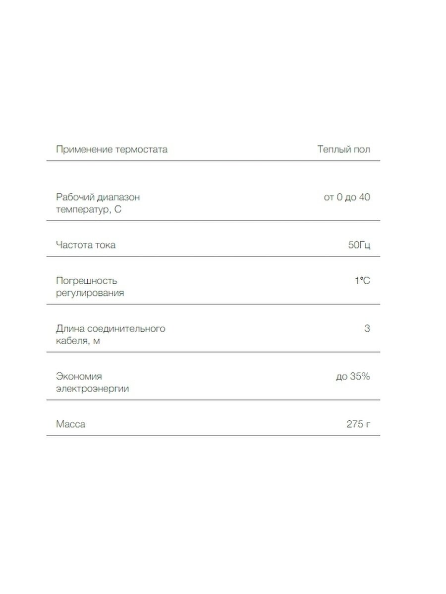 | Подходит для электрического теплого пола | есть |