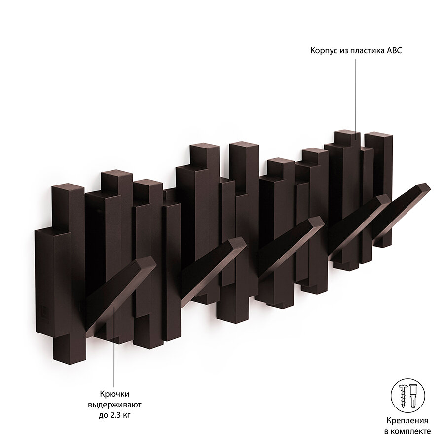 Вешалка настенная Sticks, 49,3 см, эспрессо, 5 крючков