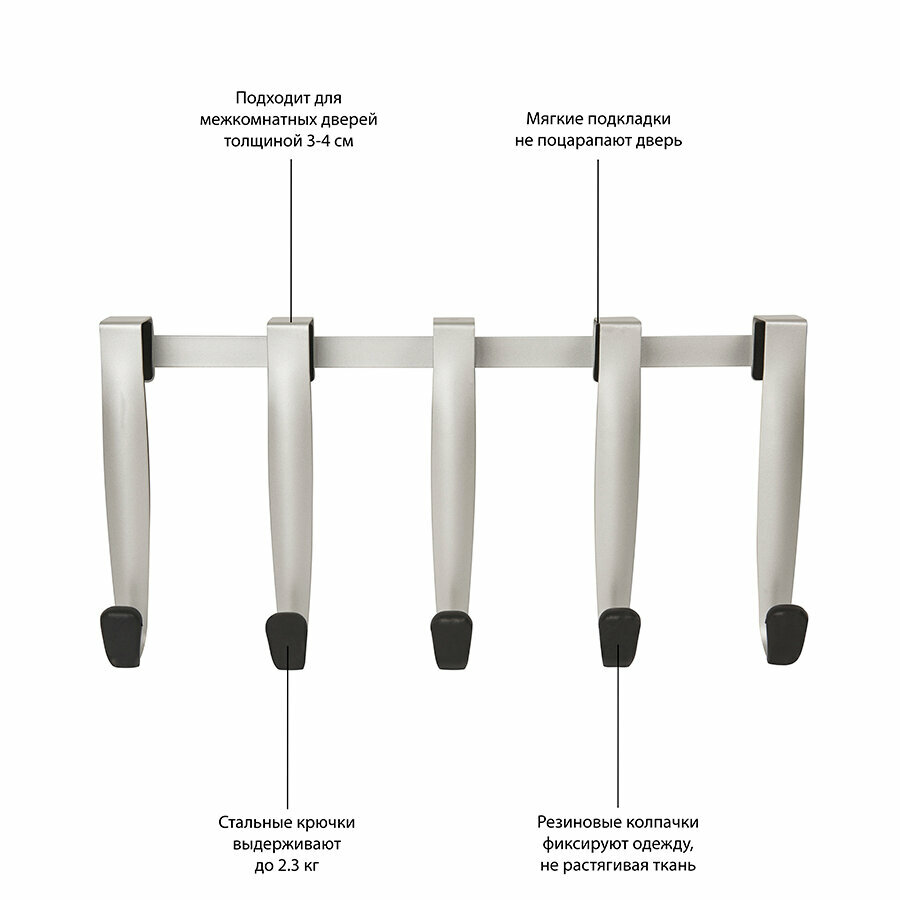 Вешалка надверная Schnook, черная-никель, 43 см, 5 крючков интересное:
