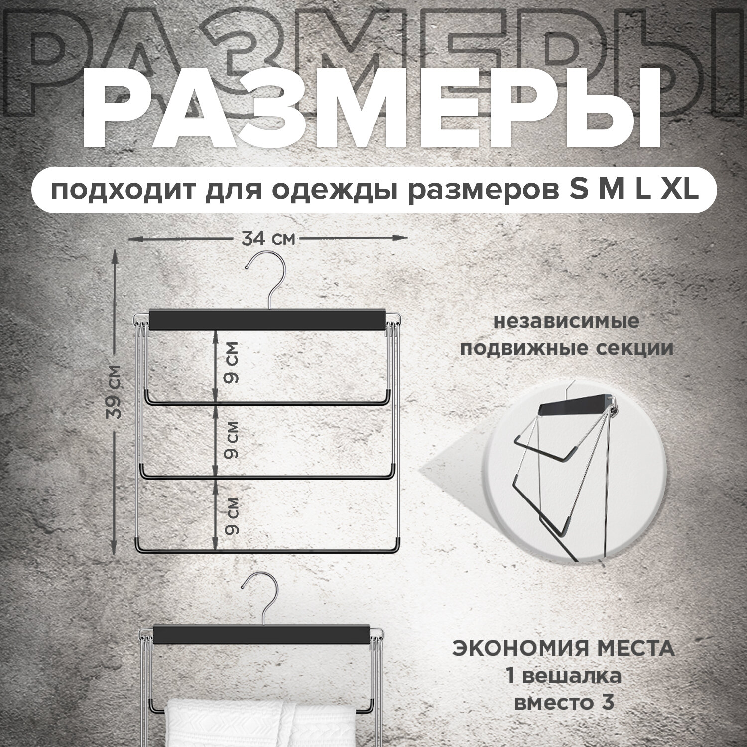 | Плюсы: | Удобная, для штанов и брюк самое то, и места меньше, чем обычные вешалки |