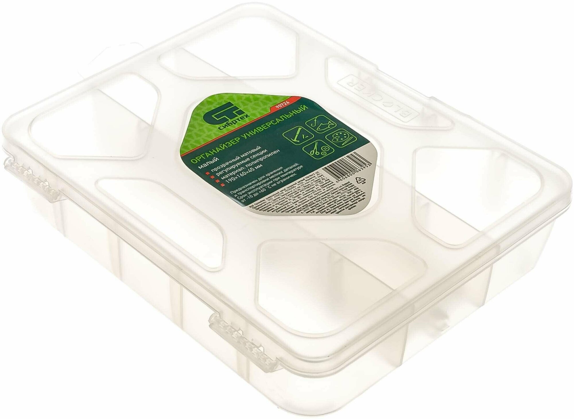 СИБРТЕХ 90726 Органайзер универсальный малый, прозрачный матовый 19x16x4,5 см Сибртех 90726 СИБРТЕХ 90726