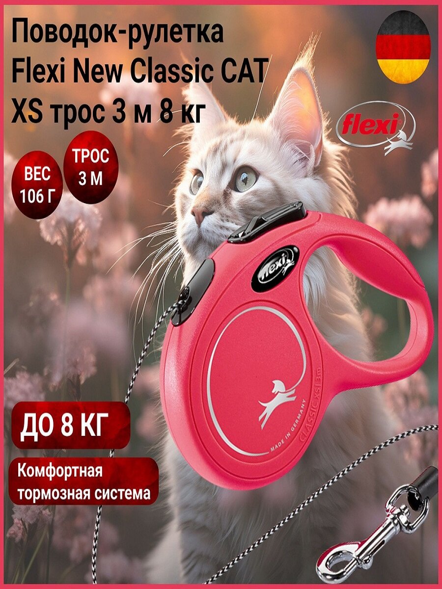 Рулетка FLEXI NEW CLASSIC CAT XS трос, 3м, 8кг, красный