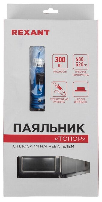Паяльник REXANT, 300Вт, 230В, "Топор", плоский нагреватель, с кнопкой 12-0188