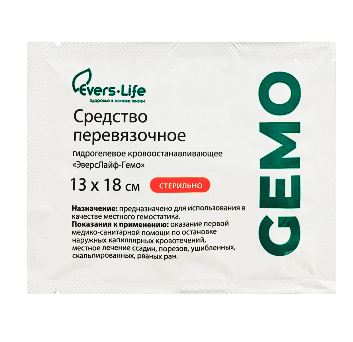 Купить Средство перевязочное гидрогелевое стерильное кровоостанавливающее ЭверсЛайф-Гемо Gemo Evers Life 13см х 18см