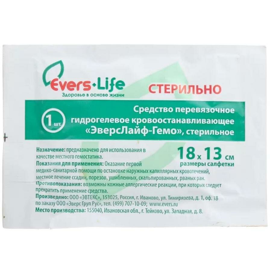 Средство перевязочное гидрогелевое кровоостанавливающее стерильное Эверс Лайф-Гемо салфетка 18смх 13см 1 шт