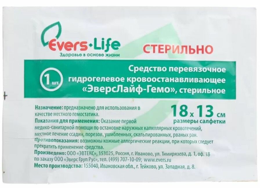 Средство EVERS Life гемо перевяз. гидрогел. кровоостанавливающее 18см х 13см