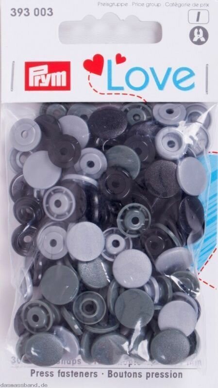 Коллекция "Love" - Кнопки "Color Snaps", диаметр 12,4мм, белый/серый/темно-серый, 30шт Prym 393008