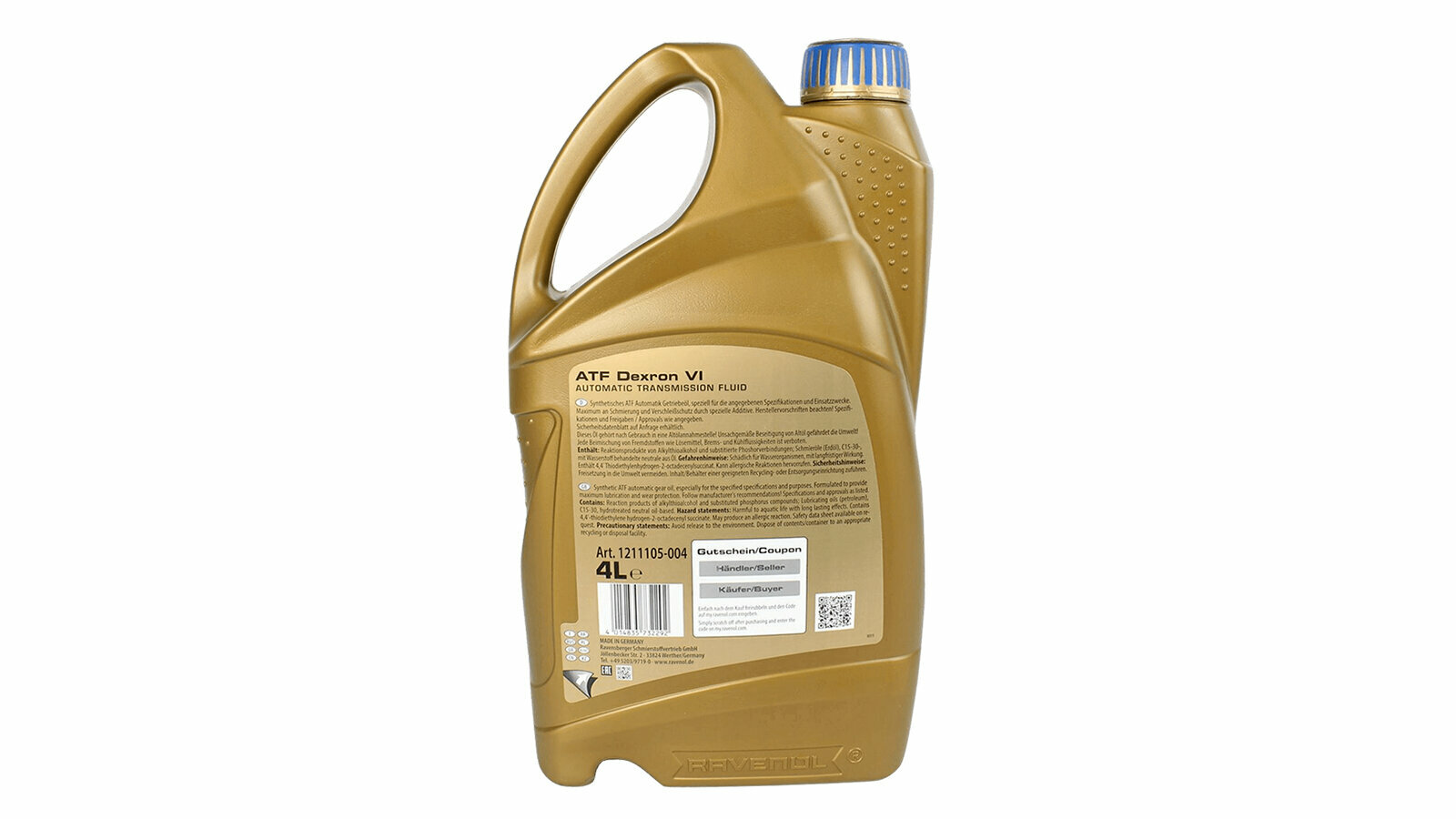 Ниже Вы можете прочитать отзывы на RAVENOL 1211105-004-01-999 Трансмиссионное масло ATF Dexron VI ( 4л) (второй номер 4014835732292), ознакомится с подробными характеристиками, посмотреть интересные обзоры и фотографии на RAVENOL 1211105-004-01-999 Трансмиссионное масло ATF Dexron VI ( 4л) (второй номер 4014835732292).