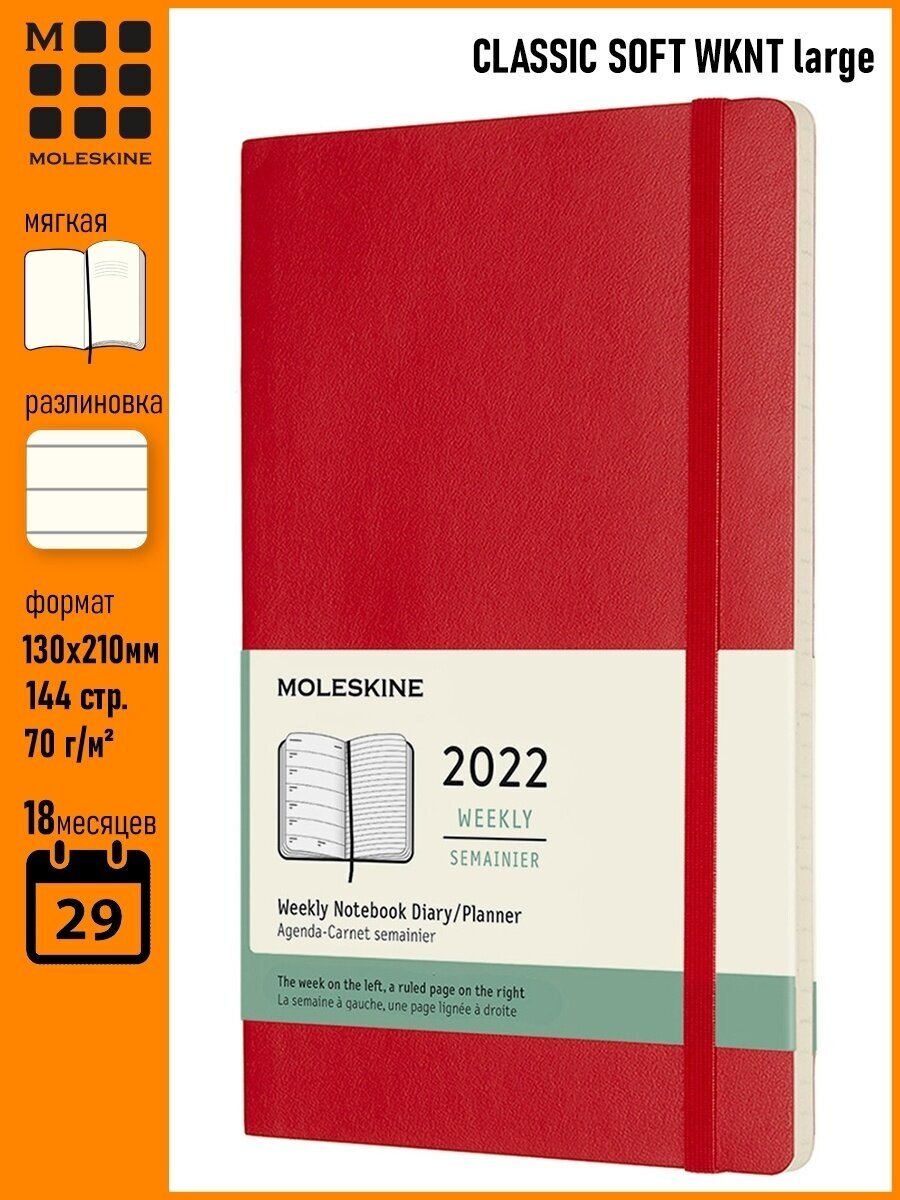 СохранитьЕженедельник Moleskine CLASSIC SOFT WKNT Large 130х210мм 144 страницы мягкая обложка красный интересное: