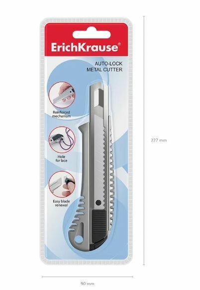 Купить Нож канцелярский 18мм ErichKrause auto-lock металлический арт.19158