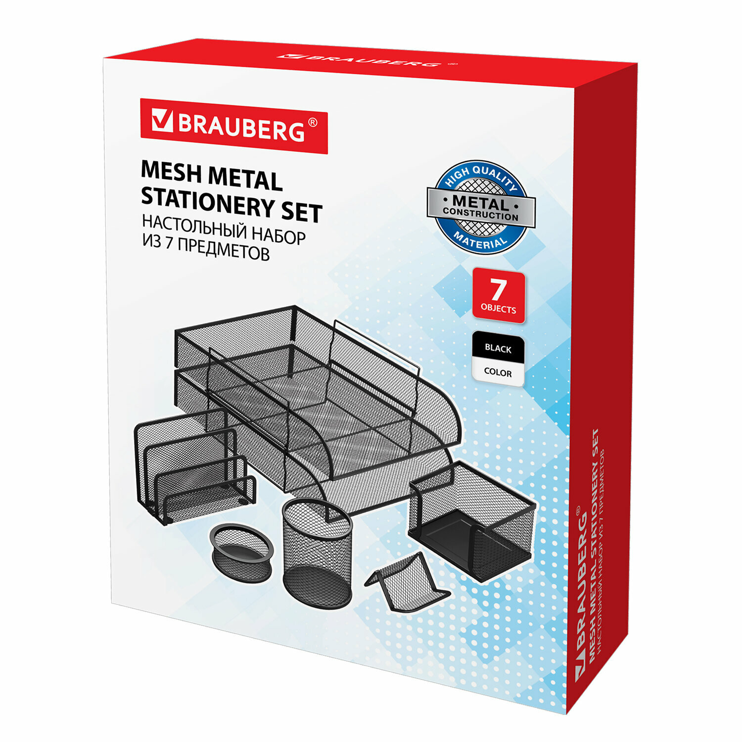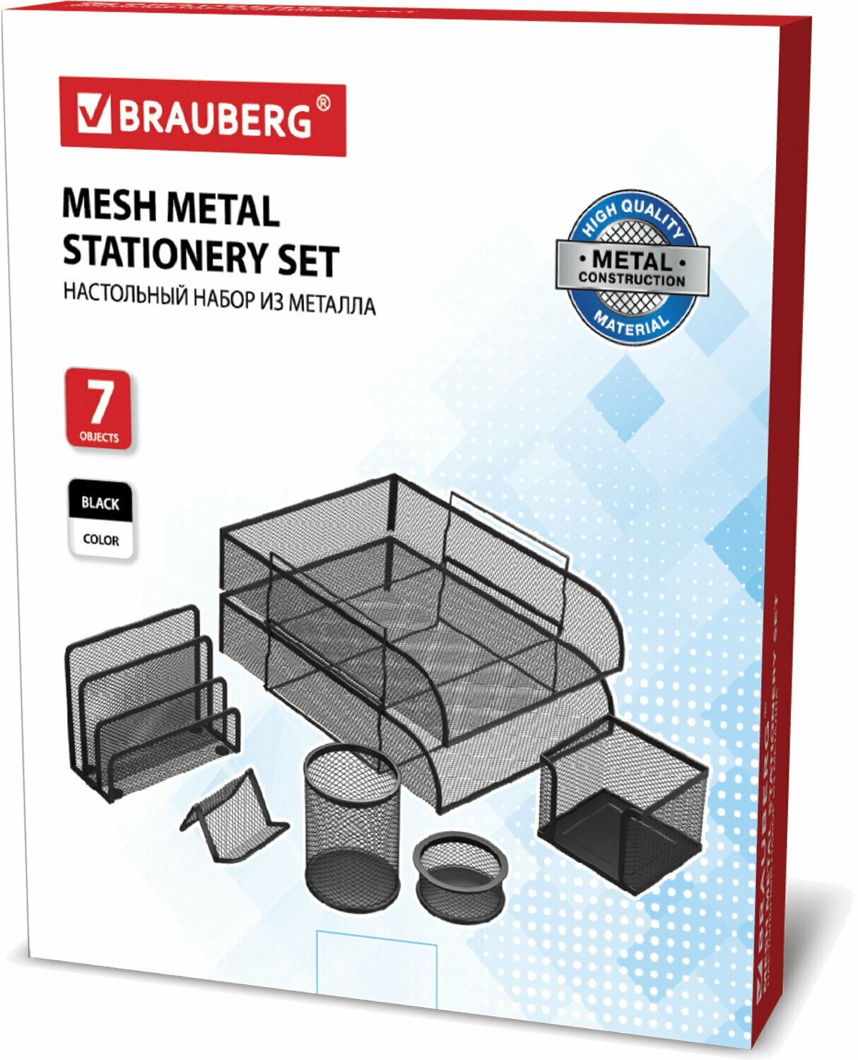 Набор BRAUBERG настольный из металла, 7 предметов, черный
