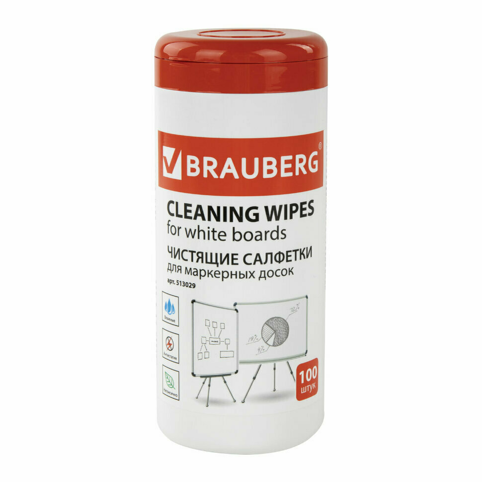 Чистящие салфетки для маркерных досок, в тубе 100 шт., влажные, BRAUBERG интересное: