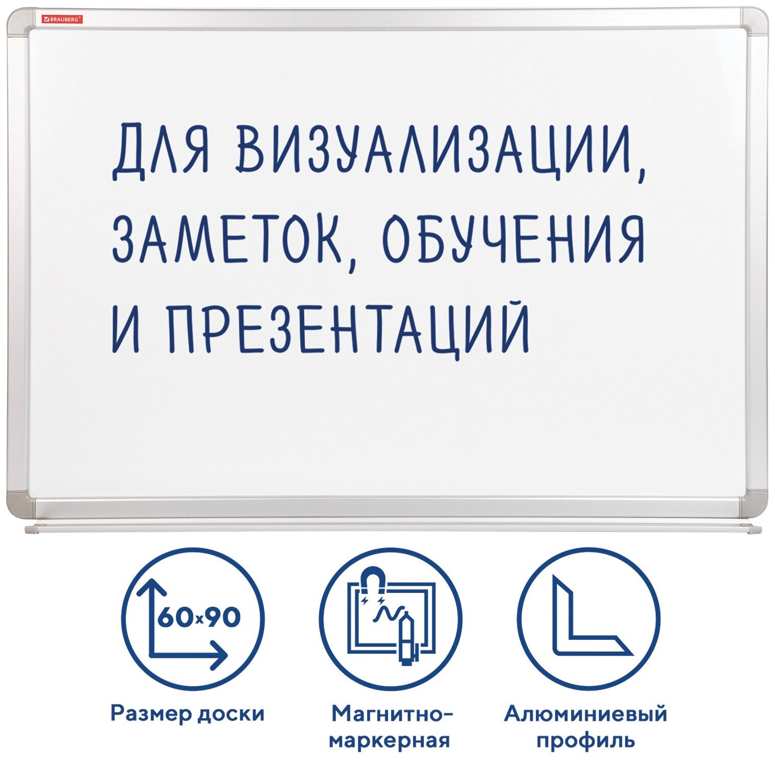 Доска магнитно-маркерная BRAUBERG, 60x90 см, улучшенная алюминиевая рамка