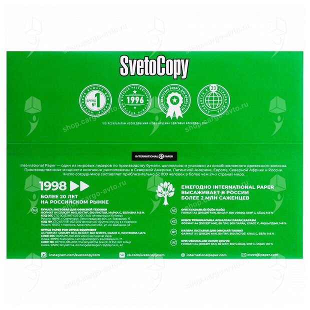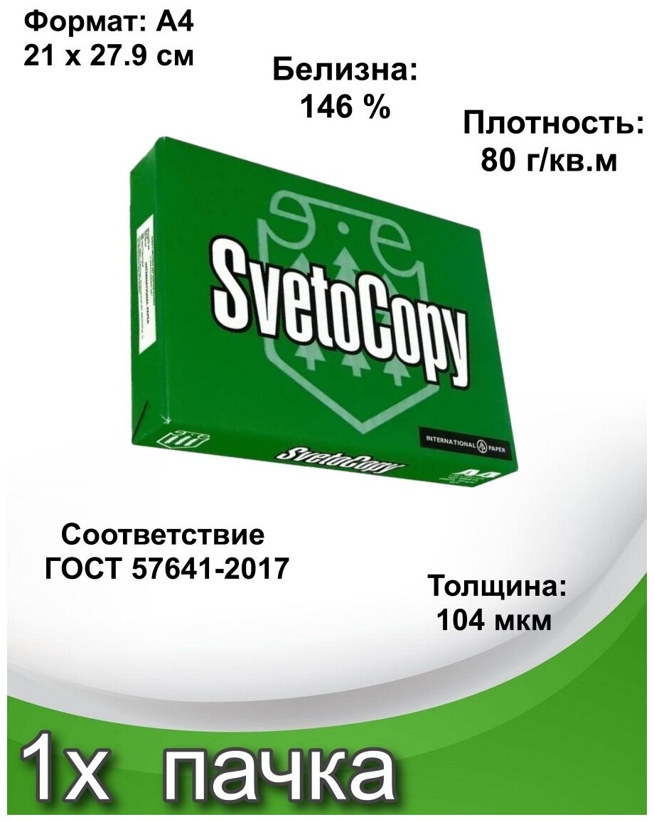 Бумага офисная SvetoCopy CLASSIC, А4, 80 г/м2, 500 л марка С, International Paper, белизна 146%