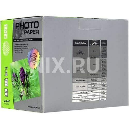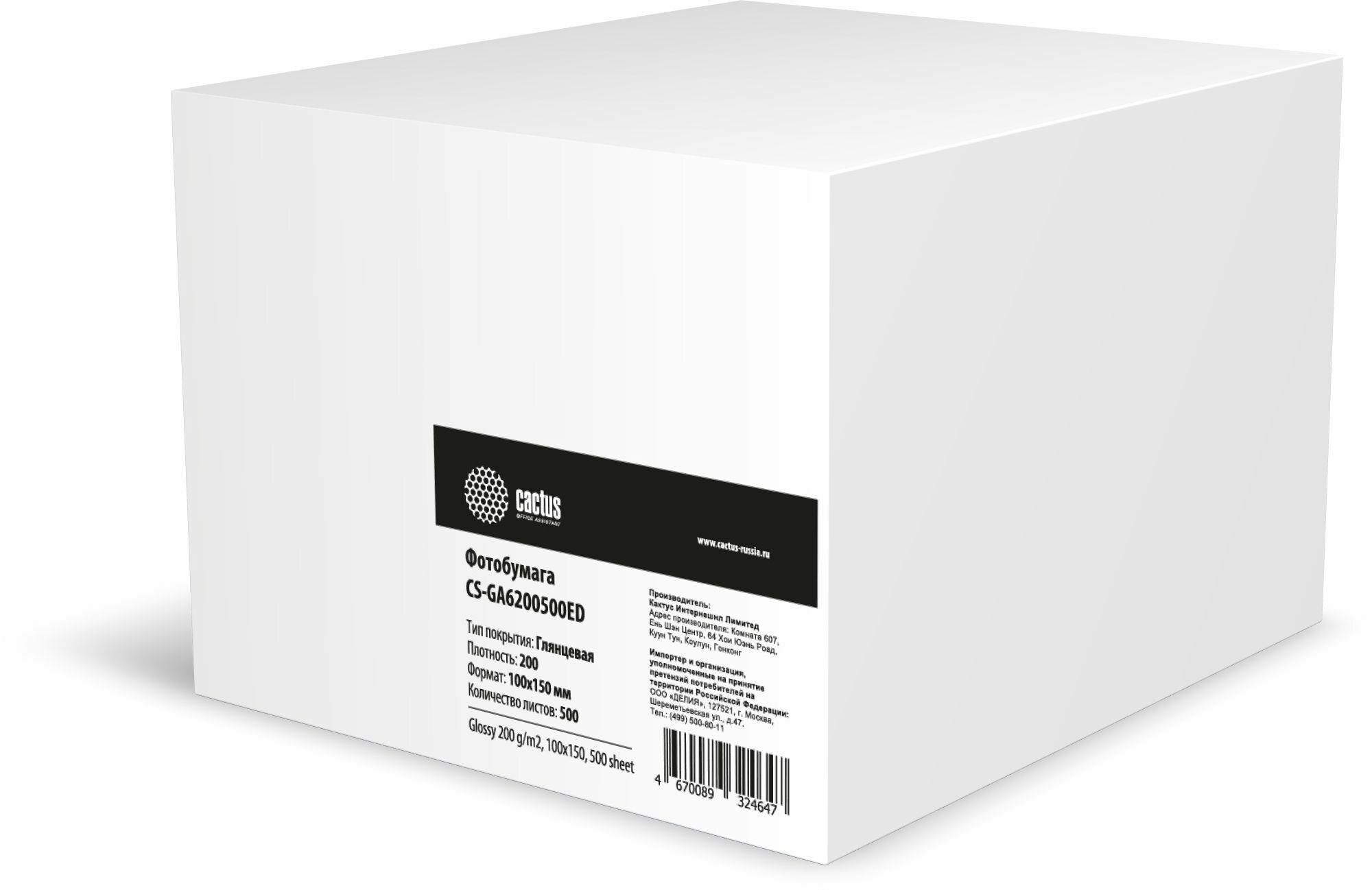 Фотобумага Cactus CS-GA6200500, глянцевая, 10х15, 200 г/м2, 500 листов