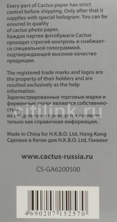 Ниже Вы можете прочитать отзывы на Фотобумага Cactus CS-GA6200500 A6/200г/м2/500л./белый глянцевое для струйной печати, ознакомится с подробными характеристиками, посмотреть интересные обзоры и фотографии на Фотобумага Cactus CS-GA6200500 A6/200г/м2/500л./белый глянцевое для струйной печати.
