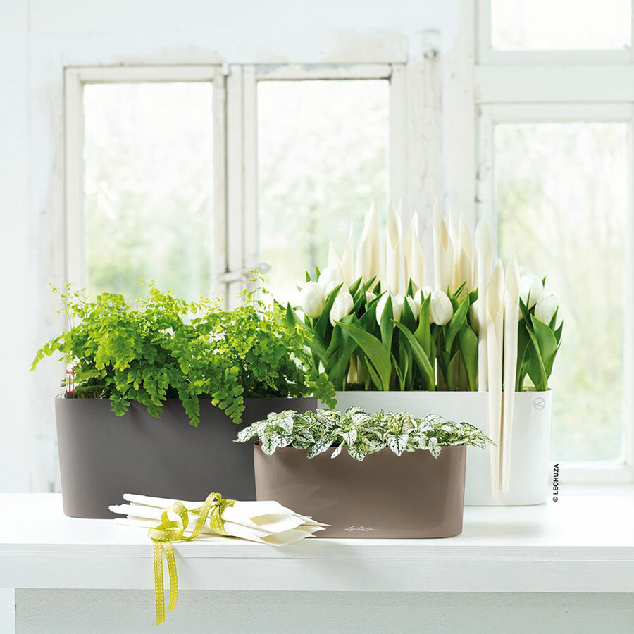 Настольное кашпо с автополивом LECHUZA DELTA 20, с субстратом в комплекте, пластик, белое, Ш15 Д40 В18 см, 5 л
