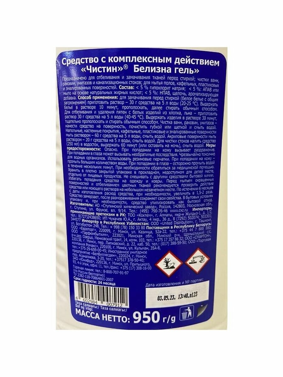 Отбеливатель чистин Белизна, 950 мл, 950 г