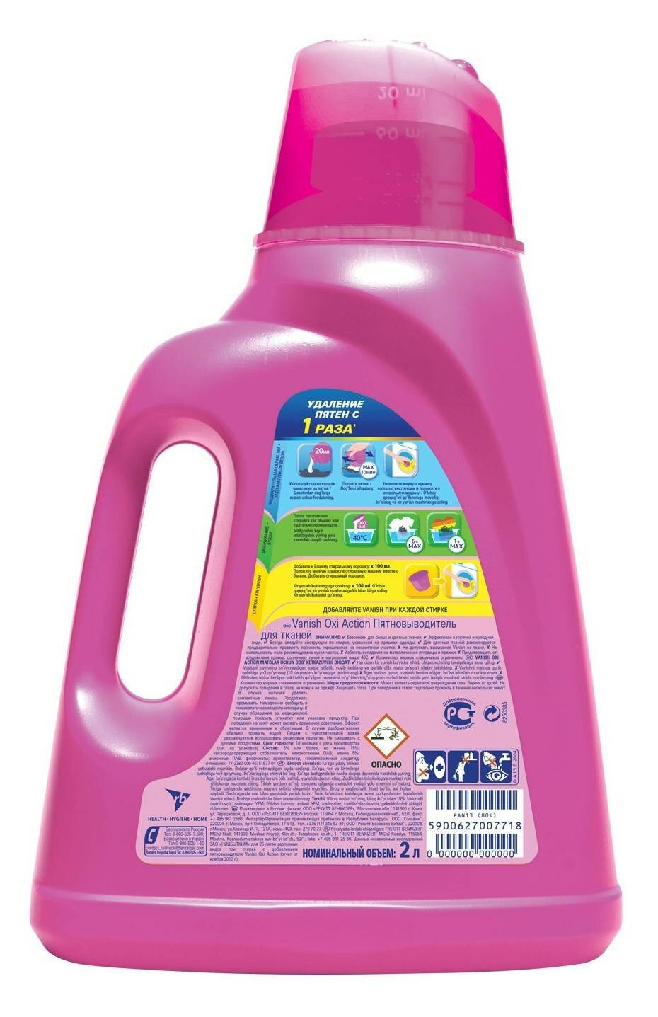 Средство для удаления пятен 2л VANISH "Oxi Action" без хлора,для белых и цветных тканей ш/к 07718