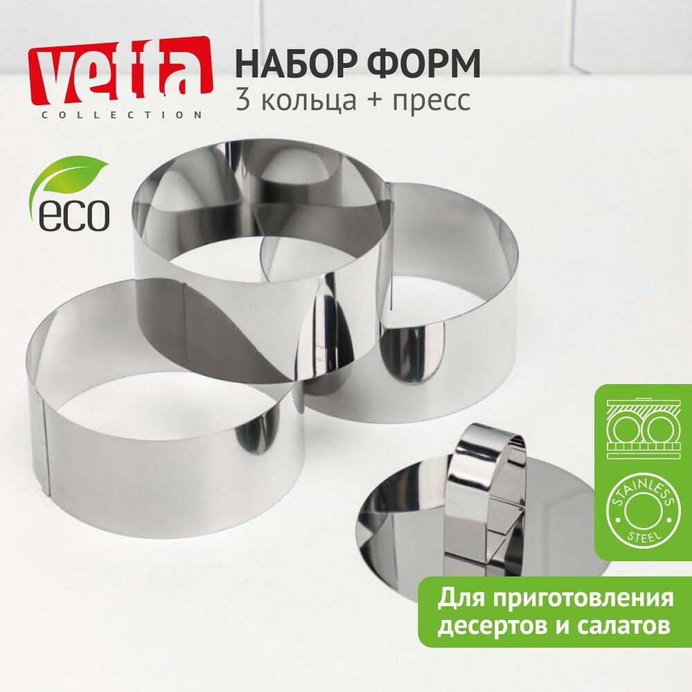 Набор форм для приготовления салатов и десертов 4 пр. (с прессом). Vetta