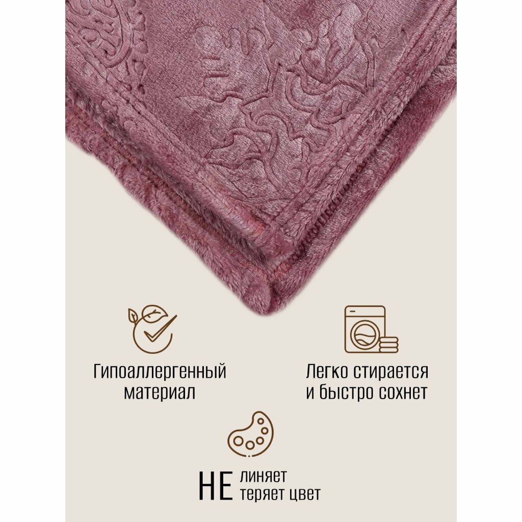 Плед двуспальный 180х200 розовый, покрывало на кровать и диван Cleo California, пушистый с рисунком, флисовый, велсофт