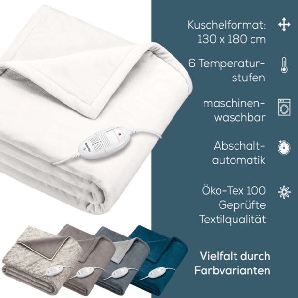 Электрическое одеяло Beurer HD 75 Cozy белое размеры 180 x 130 см, 6 температурных режимов, материал флис, мощность 100 Вт