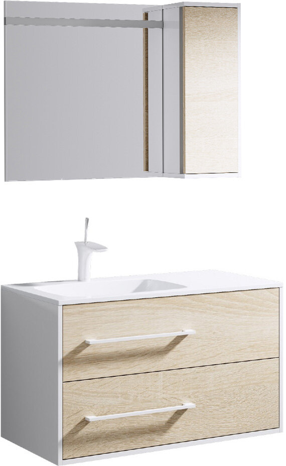 Тумба под умывальник Aqwella Miami 90 подвесная левая, белый/дуб Mai.01.09/L