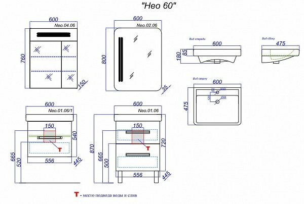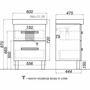 Тумба под раковину AQWELLA Нео T6 напольная