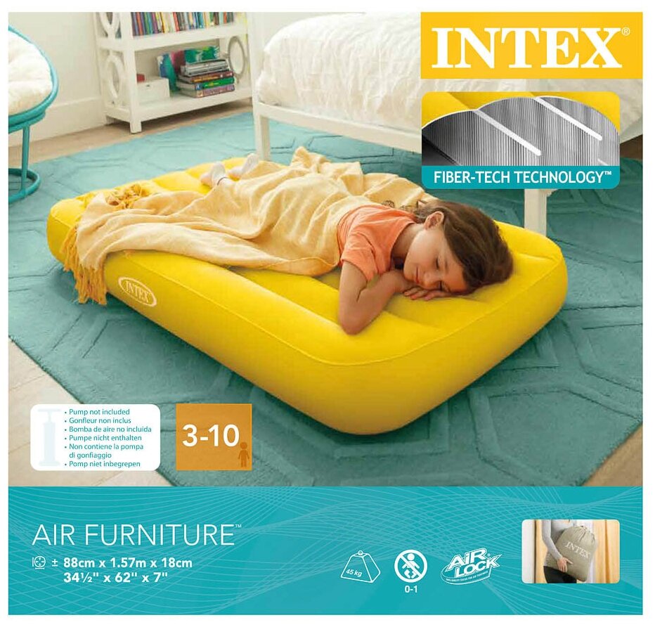 Детский надувной матрас 88х157х18 см, Cozy Kids Airbed, до 45кг.,1-местный, от 3-10 лет, без насоса, желтый, intex 66803