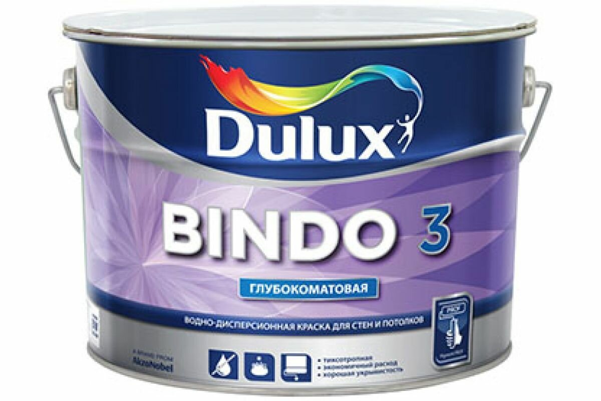 Краска Dulux Bindo 3 стандарт для стен и потолков, антиблик, глубокоматовая, база bc, 9 л 5309392